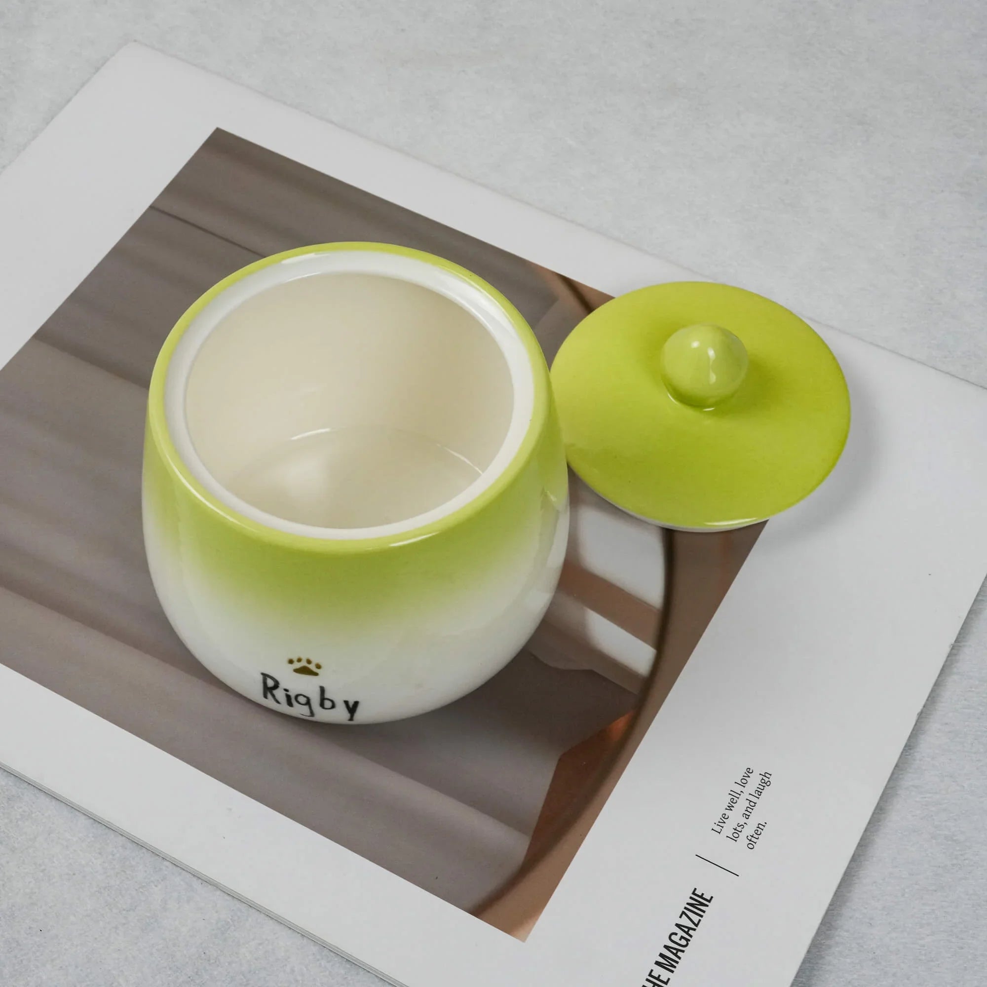 Features a calming green-to-white ceramic glaze and paw icon—customized with your pet’s name for a truly heartfelt tribute.
