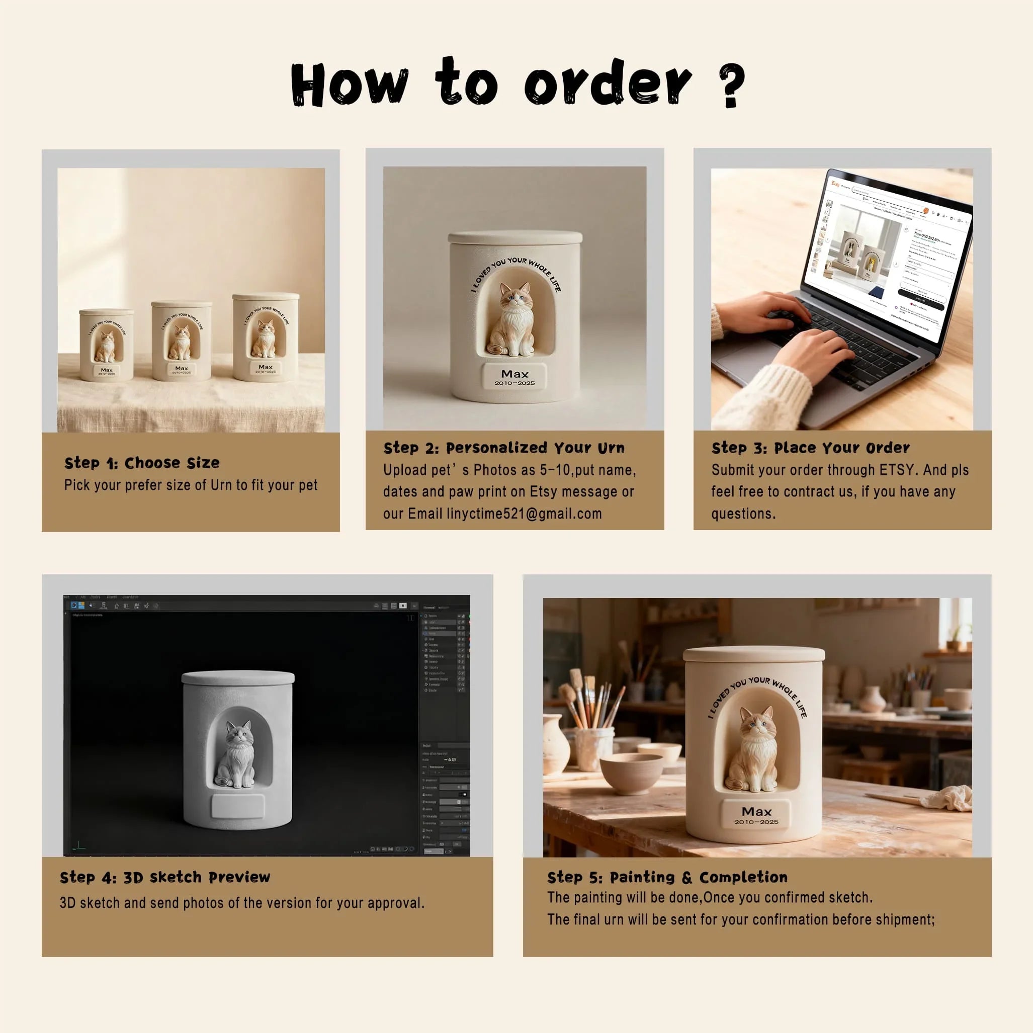 Every pet memorial is 100% handmade. This urn isn’t just a container—it’s a unique tribute crafted for your beloved pet. We handcraft each piece and recreate their likeness from your photo, adding their name and your personal message, so every detail truly captures their spirit.