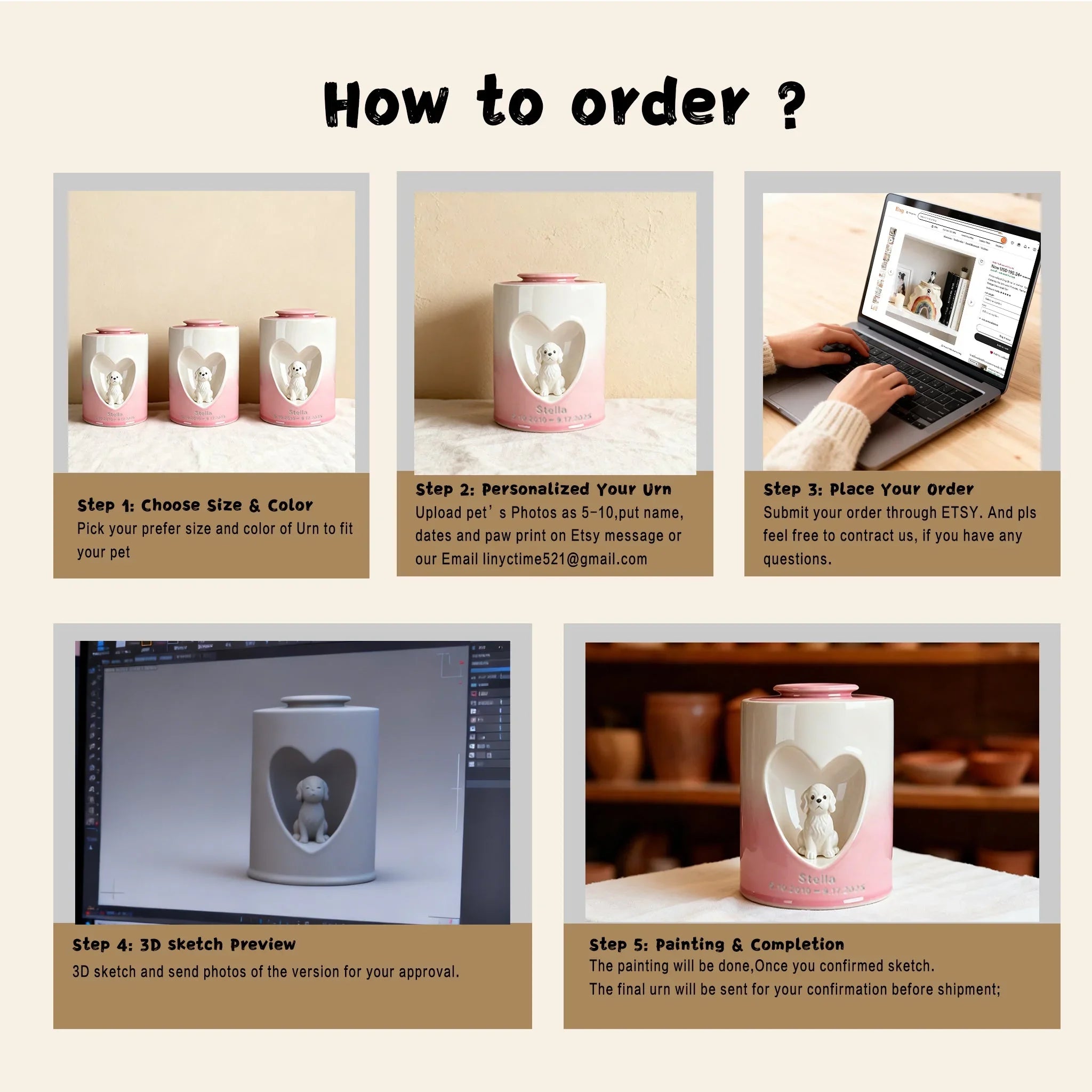 Every pet memorial is 100% handmade. This urn isn’t just a container—it’s a unique tribute crafted for your beloved pet. We handcraft each piece and recreate their likeness from your photo, adding their name and your personal message, so every detail truly captures their spirit.