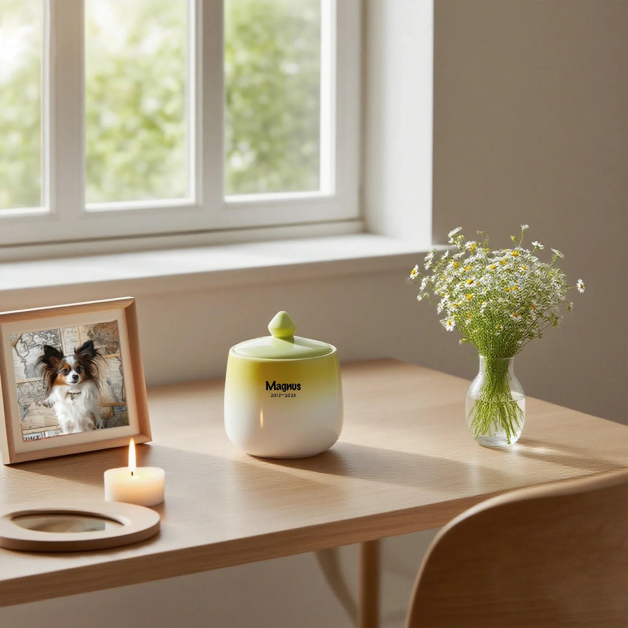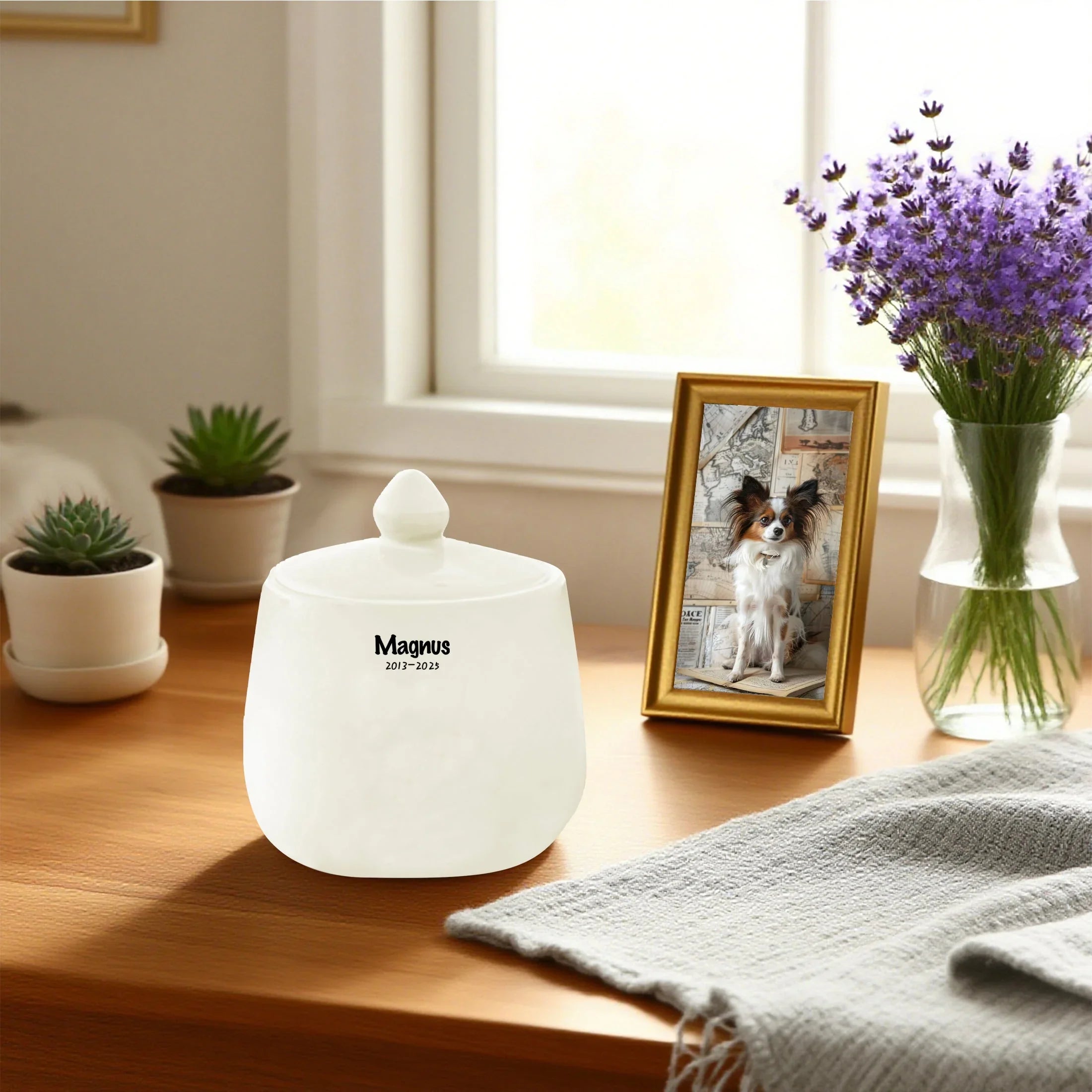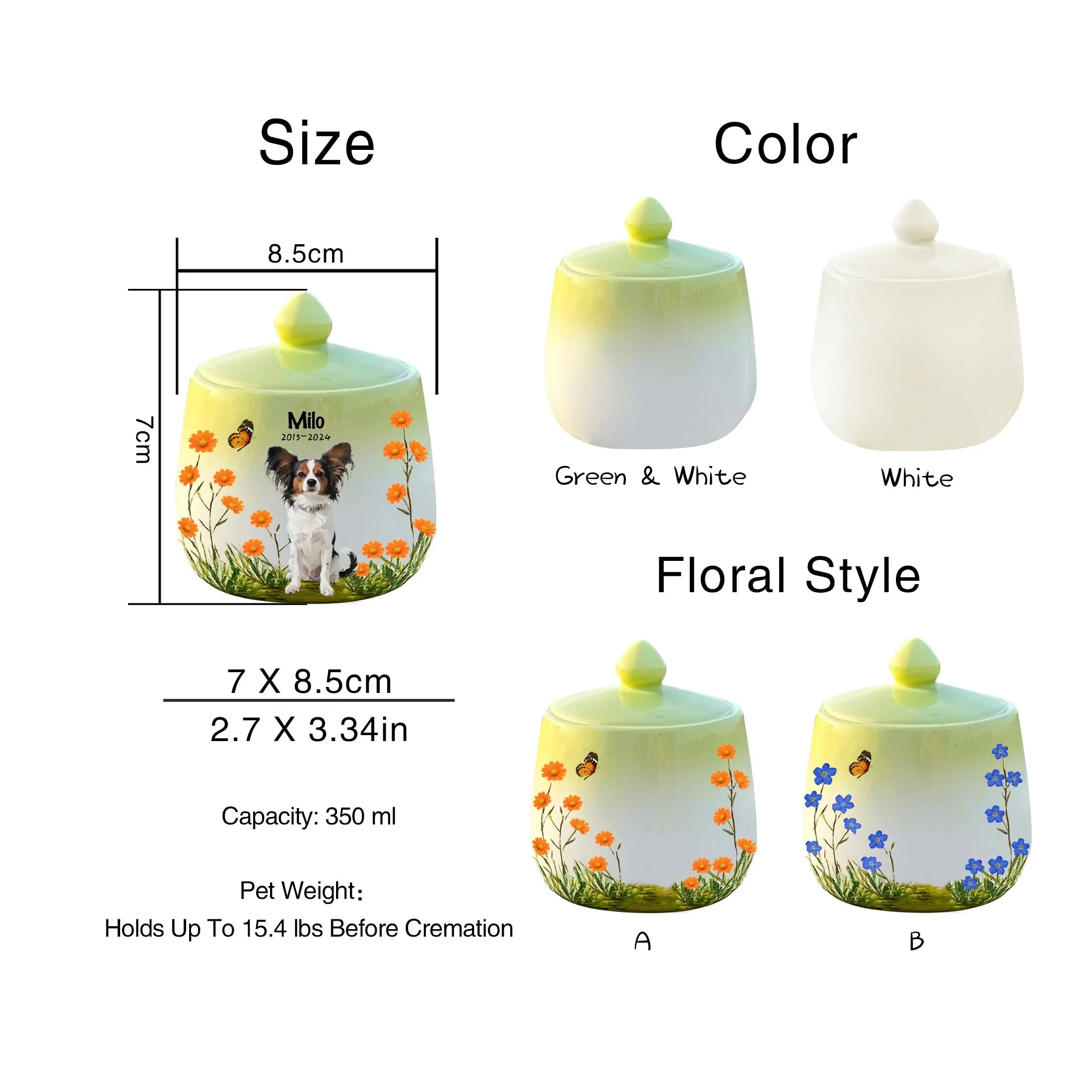 Personalized Dog Urn, Hand-Painted Ceramic Portrait,Name and Date,Floral, Pet Memorial Keepsake, Forever Home & Comfort for Beloved Fur Baby